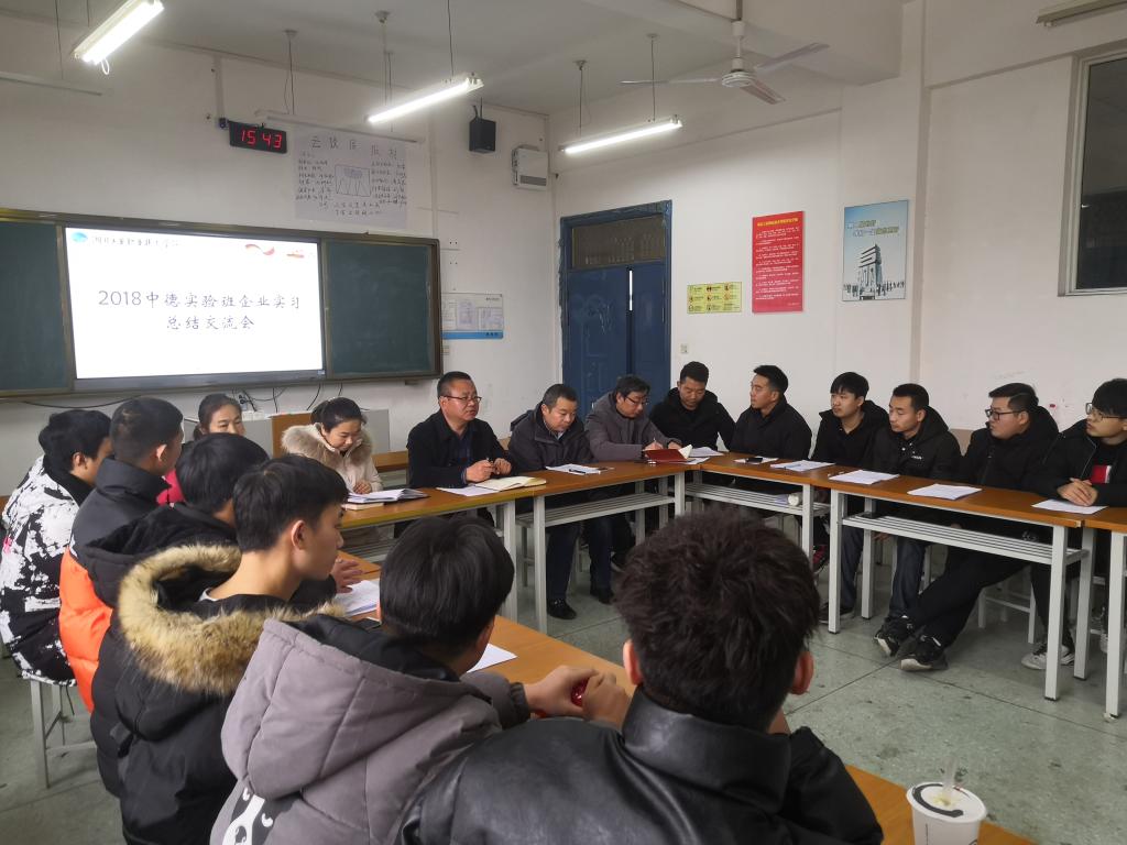 新闻网讯(通讯员 陈东)“在12天的实习过程中,我从师傅身上学到了不少东西,也跟他们结下了深厚的感情,毕业时我想回这家企业工作......”一名2018级中德实验班同学在发言时诚恳地说。1月2日下午,2018级中德实验班在5307教室召开了企业实习总结交流会。交流会由汽车检测与维修技术专业负责人陈东主持,公司领导班子、各专业负责人和教师代表参加了交流会。