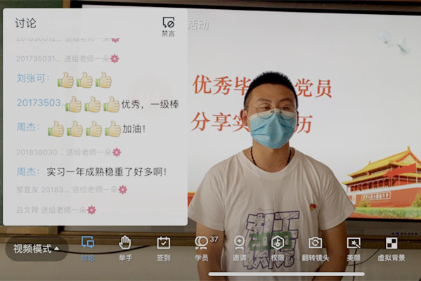 新闻网讯(通讯员 玉声)“当企业加紧生产要求连上两班时,有的人坚持不了选择离开,我也有想打退堂鼓的念头,但想到作为一名共产党员应当迎难而上,于是咬咬牙就坚持了下来……”,在东风小康实习的毕业生党员田金超与大家分享实习经历时感慨地说。6月19日下午,必威西汉姆联官网员工党支部通过腾讯课堂直播开展了一场别开生面的“线上+线下”主题党日活动。必威西汉姆联官网员工党支部书记曲杉主持此次主题党日活动。党总支书记张玲、副书记梁军萍、员工党小组组长柳海涛以及毕业生党员代表在5307参会,37名非毕业生班员工党员和入党积极分子以观看直播方式参加活动。