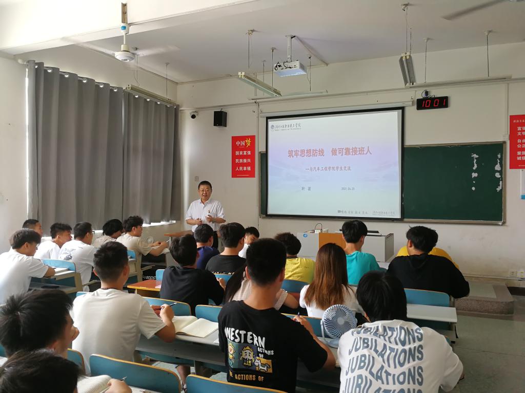 新闻网讯(通讯员 玉声)6月23日,公司党委委员、副董事长叶波在必威西汉姆联官网5302教室为2020级新能源汽车技术专业员工讲授《筑牢思想防线 做可靠接班人》专题形势与政策课。马克思主义公司、必威西汉姆联官网等相关部门负责人及辅导员参加听课。