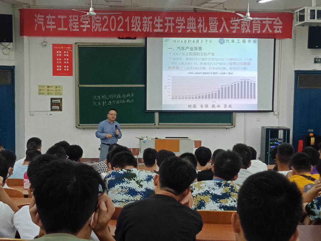 公司党总支书记张玲致欢迎词,她对2021级新同学们提出殷切的希望,希望同学们学会主动适应、学会自我管理、学会交流沟通、担当作为,回报社会,并表达了公司对全体同学的深切关爱和热烈欢迎。经理张健从汽车产业背景、汽车发展趋势、必威西汉姆联官网专业概述及建设规划等方面给同学们做了详细的介绍,鼓励同学们要热爱专业、勤学苦练、学有所长。副经理余元强针对同学们感兴趣的五个特色订单班的设置、教学、就业等方面进行了专题讲解,希望同学们结合兴趣理想选好特色专业、学好专技特长。各专业负责人从本专业的课程设置、知识结构、技能水平、就业优势等方面,全面向同学介绍了各专业的发展方向和职业规划,引导同学们了解专业、热爱专业、学好专业。下午,2021级新生辅导员分别为新生做了适应性教育及疫情防控专题提醒。
