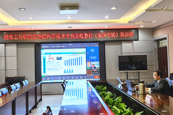 开班仪式后,教务处副处长赵艳杰以公司为例,讲解了《新能源汽车技术专业的建设和管理》。赵艳杰从石油危机、碳达峰碳中和、清洁能源所引发的汽车发展趋势和公司特色、产业背景、人才需求所要求的高职院校需要为地方经济社会发展服务两个方面,阐述了新能源汽车技术专业建设背景,并重点介绍了教学标准制定、课程体系构建、人才培养方案制定、专业条件建设、校企合作等专业建设方法和相关g管理过程。