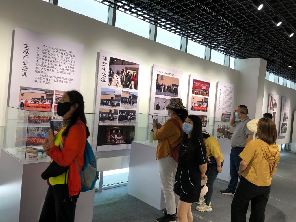 在竹溪县两馆一中心,教职工们饶有兴致地参观了非物质文化遗产展厅。流光溢彩、精美绝伦的漆器,充满浓浓乡土味儿的剪纸等民俗作品,不仅让人感受到民间艺术的旺盛生命力,对那些能工巧匠由衷敬佩,也增添了大家扎根岗位勤练技能的使命感。