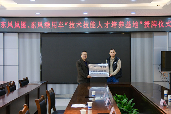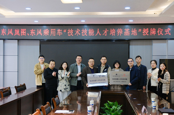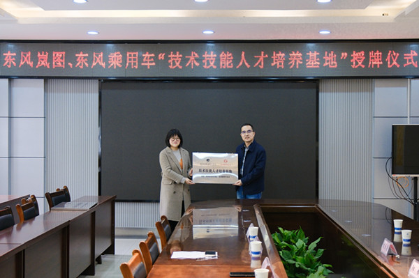 郑强对到访企业表示热烈欢迎,并简要介绍了公司的发展历程和办学特色,指出公司一直以来本着“立足十堰,融入东风,服务本地”的方针,与东风公司保持着长期密切的合作关系。希望通过此次基地共建,在产教融合的共同体上进一步深化合作,共同开发课程,共同培养人才,实现协同育人。阳念感谢公司为东风乘用车公司发展提供的人才支撑,并对企业人才需求情况进行了介绍,对接下来的校企合作项目进行了交流。吴迪介绍了岚图汽车科技有限公司校企合作构想,即顶岗实习、定向培养、共建基地“三层次”合作模式,培训、培养、配置“三位一体”顶层设计,共同设定专业、共同开发课程、共同互派讲师、共同建设基地“四个共同”管理策略,打造技术技能人才培养新模式,提升校企合作新高度。 随后两家企业进行了授牌。