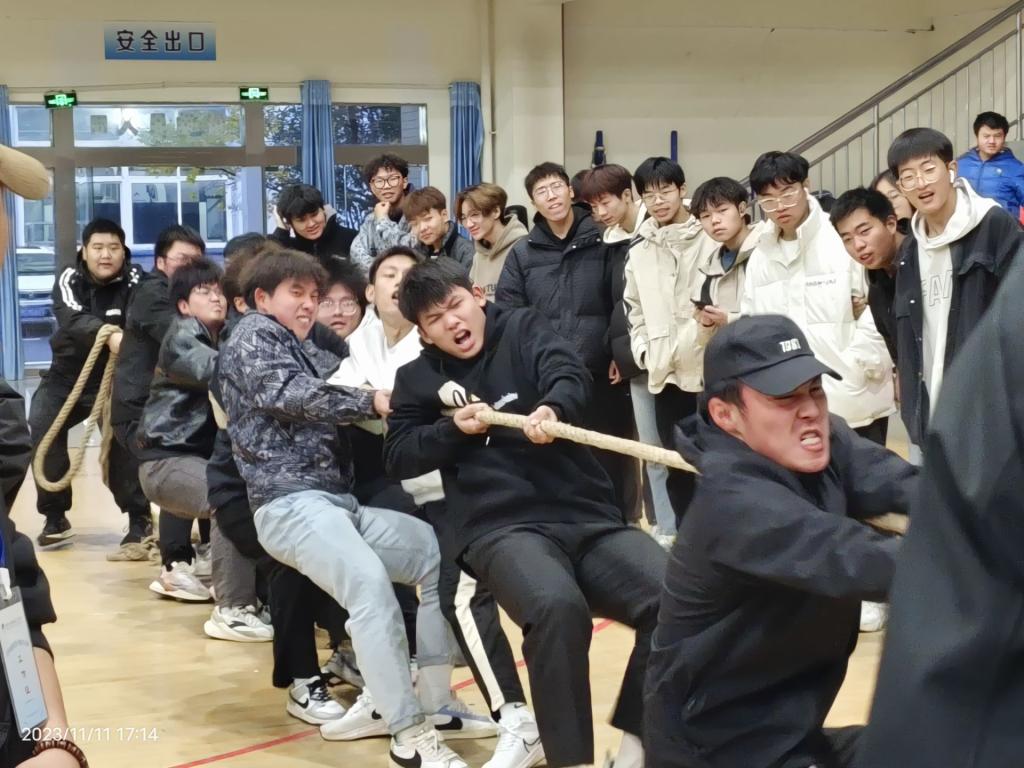 此次趣味运动会共设有7个项目,其中男生以班级为单位参加团体赛“车轮滚滚”、“齐心协力”、“和谐号”、“拔河”项目,女生参加个人赛“摸石头过河”、“踢毽子”、“跳绳”项目。尽管比赛当天室外下着又密又细的冬雨,但却阻挡不了体育馆内同学们的热情。参赛队员们个个精神饱满,奋力拼搏,拉拉队的同学大声呐喊助威,跃跃欲试。