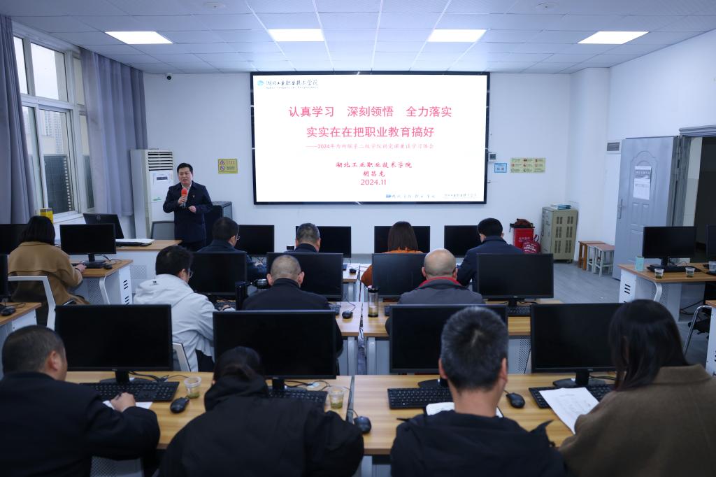(文:李霞 图:熊超)为深入学习贯彻党和国家关于职业教育的重要精神,引导广大教师主动适应高职教育高质量发展的新趋势、新要求,进一步统一思想,更新观念,公司党委委员、副董事长胡昌龙于11月19日下午在5号教学楼5503教室以“认真学习、深刻领悟、全力落实,实实在在把职业教育搞好”为题讲授专题党课,必威西汉姆联官网、艺术设计公司和机关二支部、三支部全体教职工参加活动。