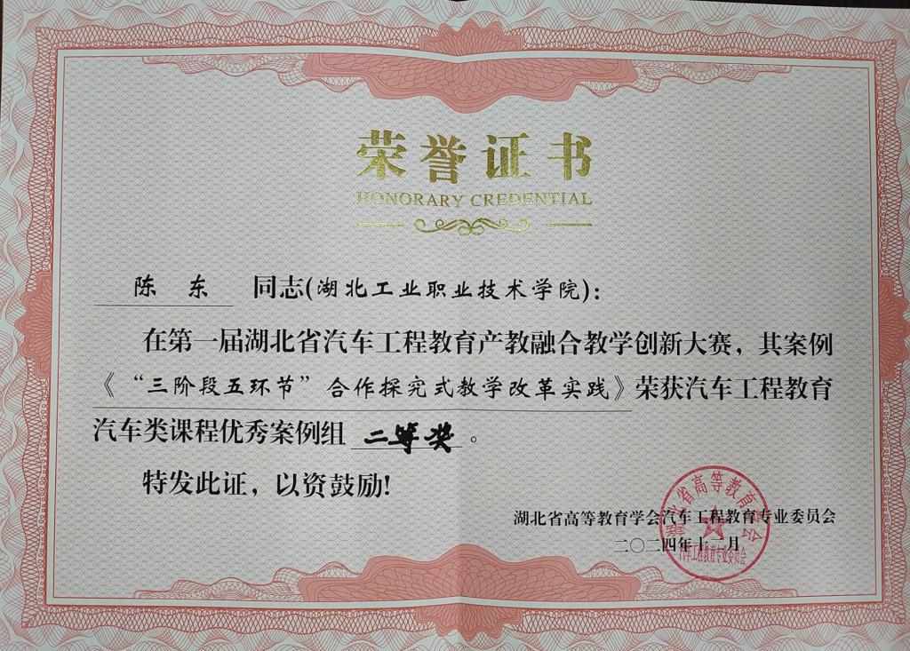 (通讯员张健)11月30日至12月1日,湖北省高等教育学会汽车工程教育专业委员会2024年年会在武汉理工大学举行,同期举办了首届湖北省汽车工程教育产教融合教学创新大赛,在大赛中,公司必威西汉姆联官网江军老师的《基于知识图谱的混合式精准教学模式创新实践》荣获汽车工程教育汽车类课程优秀案例特等奖,陈东老师的《“三阶段五环节”合作探究式教学改革实践》、赵锐老师的《追溯汽车之韵,传承文化之魂》荣获汽车工程教育汽车类课程优秀案例二等奖。